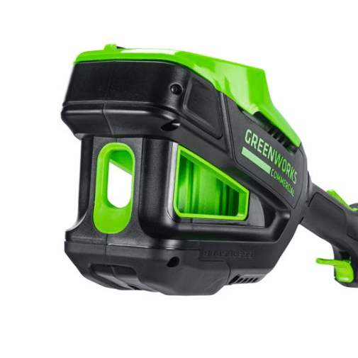 - Удобная D-образная ручка позволяет легко “маневрировать” вокруг предметов даже в ограниченном пространстве. Триммер работает от аккумуляторной батареи 82V Commercial, которую можно использовать со всеми устройствами Greenworks из линейки техники 82 вольт.