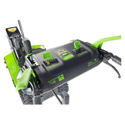 Снегоуборщик аккумуляторный самоходный GREENWORKS GD82ST56 (2602807) - предназначен для уборки снега с парковочных мест, улицы и тротуаров площадью 400 м² . Оснащен системой разворота на месте Zero Turn.