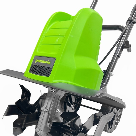 Электрический культиватор GREENWORKS GTL1520 предназначен для обработка земли на небольших участках, например грядках, в цветниках и клумбах. Там, где земля уже подвергалась обработке, он станет незаменимым помощником для рыхления почвы в сезон посадки, а также для работы в малогабаритных теплицах.