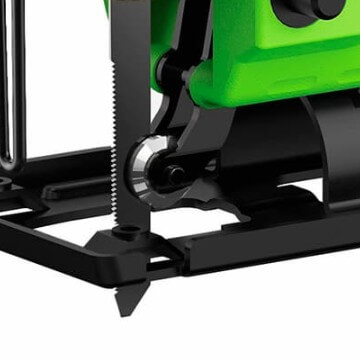 - Удобство и высокая производительность лобзика обеспечиваются благодаря множеству полезных функций и опций, таких как маятниковый механизм с четырьмя уровнями регулировки, цилиндрический шток с бесключевым патроном, патрон-пилкодержателю с выталкивателем и автоматическая система сдува опилок.
