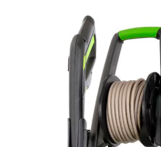 - Мойка имеет компактные размеры и небольшой вес для комфортной транспортировки. Цилиндр помпы сделан из алюминия, а поршень из нержавеющей стали. Для удобного хранения оснастки на корпусе предусмотрен барабан для наматывания шланга, а сбоку корпуса можно хранить пистолет-распылитель. Также присутствует бачок для моющего средства.